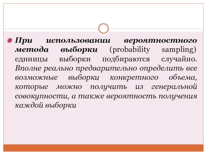 Слайд 17При использовании вероятностного метода выборки (probability sampling) единицы выборки подбираются