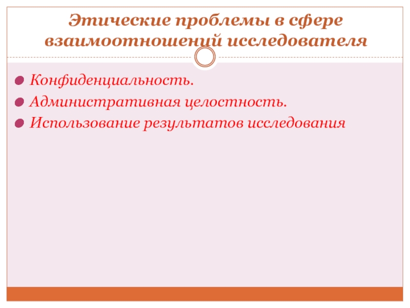 Слайд 6Этические проблемы в сфере взаимоотношений исследователя