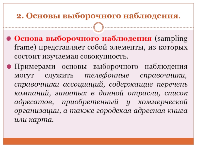 Основа выборочного наблюдения (sampling frame) представляет собой