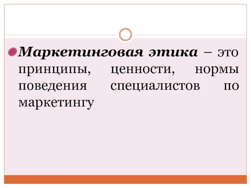 Слайд 3Маркетинговая этика – это принципы, ценности, нормы поведения специалистов по