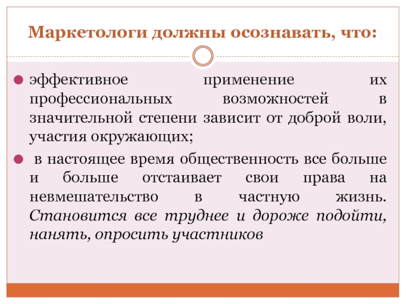 время общественность все больше и больше отстаивает свои права на невмешательство в частную жизнь. Становится все труднее и дороже подойти, нанять, опросить участников