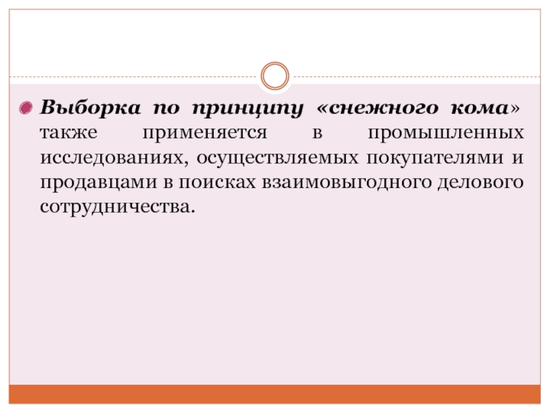 Слайд 22Выборка по принципу «снежного кома» также применяется в промышленных исследованиях,