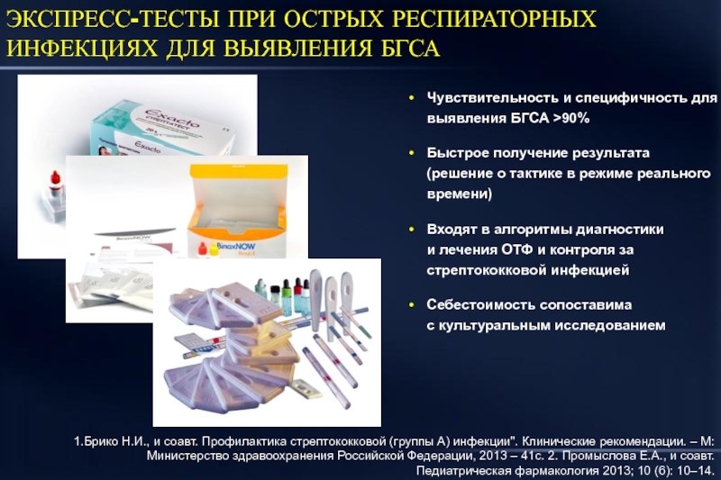 1.Брико Н.И., и соавт. Профилактика стрептококковой (группы А) инфекции". Клинические рекомендации. – М: Министерство здравоохранения Российской Федерации, 2013 – 41с. 2. Промыслова Е.А., и соавт. Педиатрическая фармакология 2013; 10 (6): 10–14.