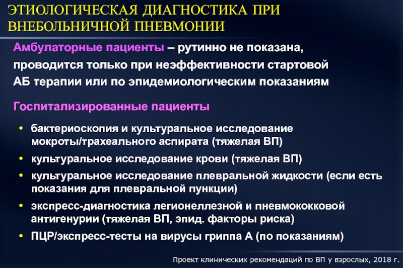 Проект клинических рекомендаций по ВП у взрослых, 2018 г.