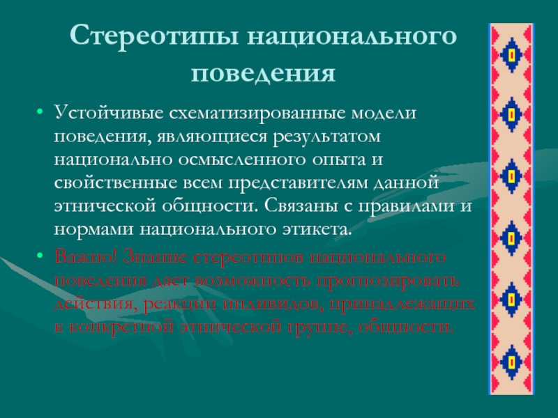 Устойчивые схематизированные модели поведения, являющиеся результатом национально осмысленного