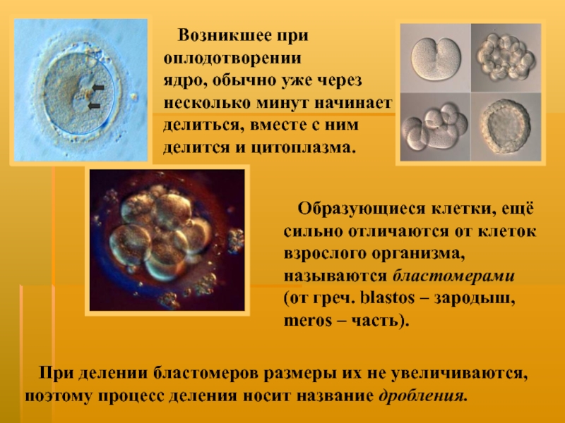 При делении бластомеров размеры их не увеличиваются, поэтому процесс деления носит название дробления.