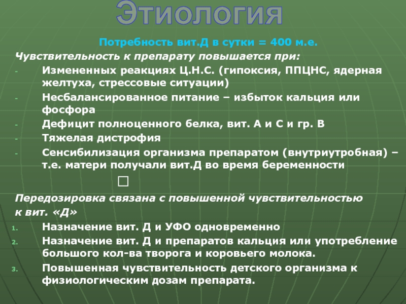 тканях вследствие передозировки витамином «Д» или индивидуальной повышенной чувствительности к