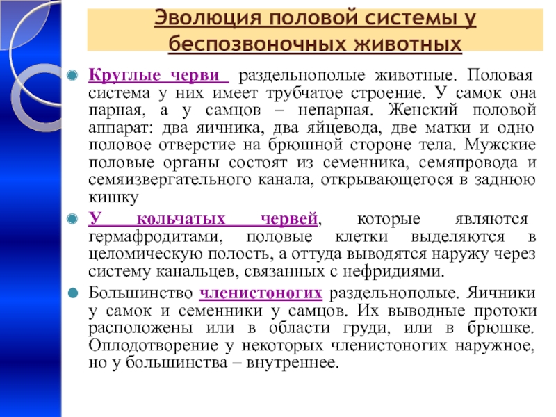 Слайд 5Эволюция половой системы у беспозвоночных животных