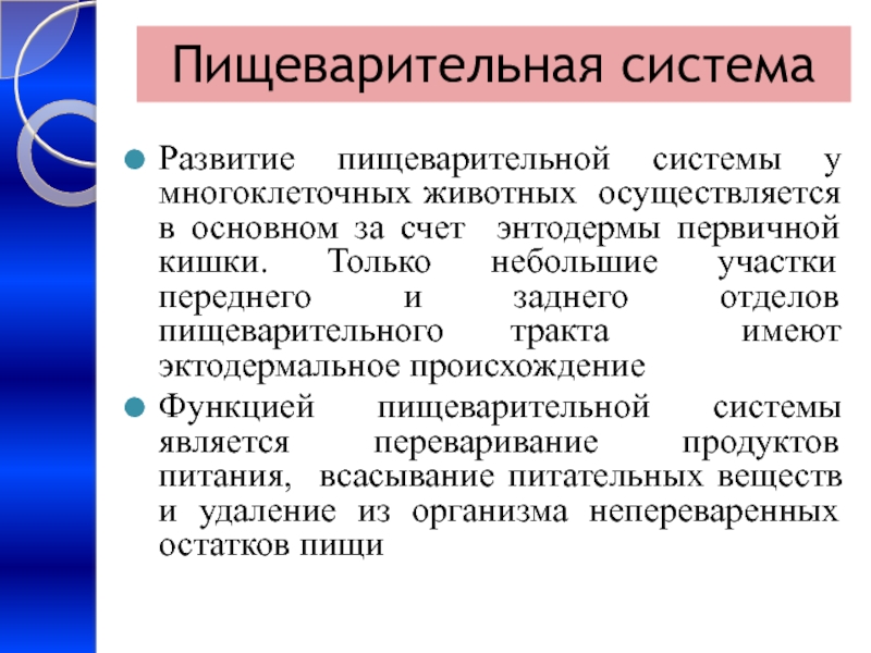 Развитие пищеварительной системы у многоклеточных животных осуществляется в основном