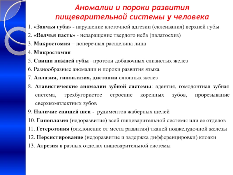 Аномалии и пороки развития пищеварительной системы у человека