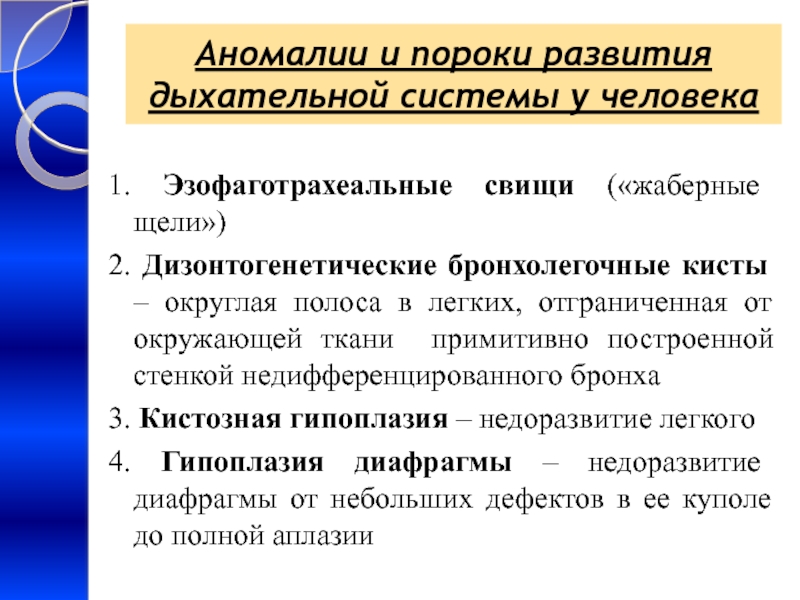 Слайд 25Аномалии и пороки развития дыхательной системы у человека
