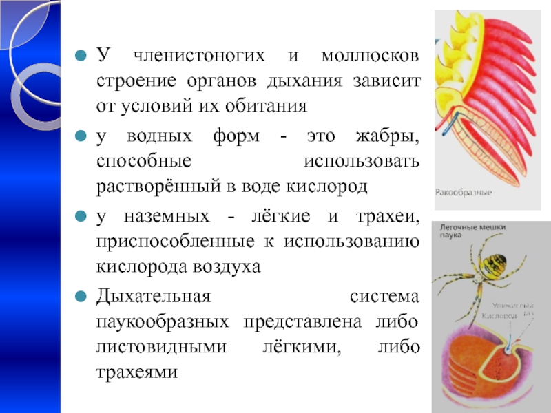 У членистоногих и моллюсков строение органов дыхания зависит от условий