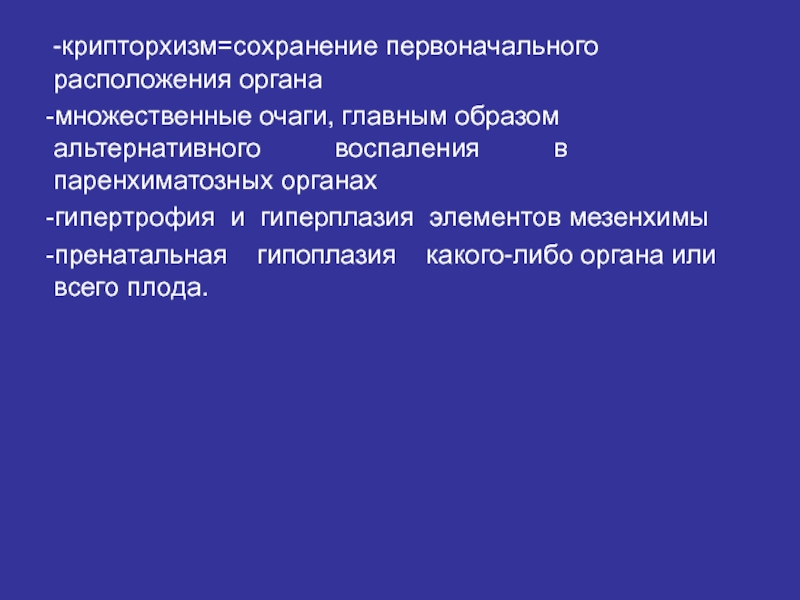 Слайд 20 -крипторхизм=сохранение первоначального расположения органа