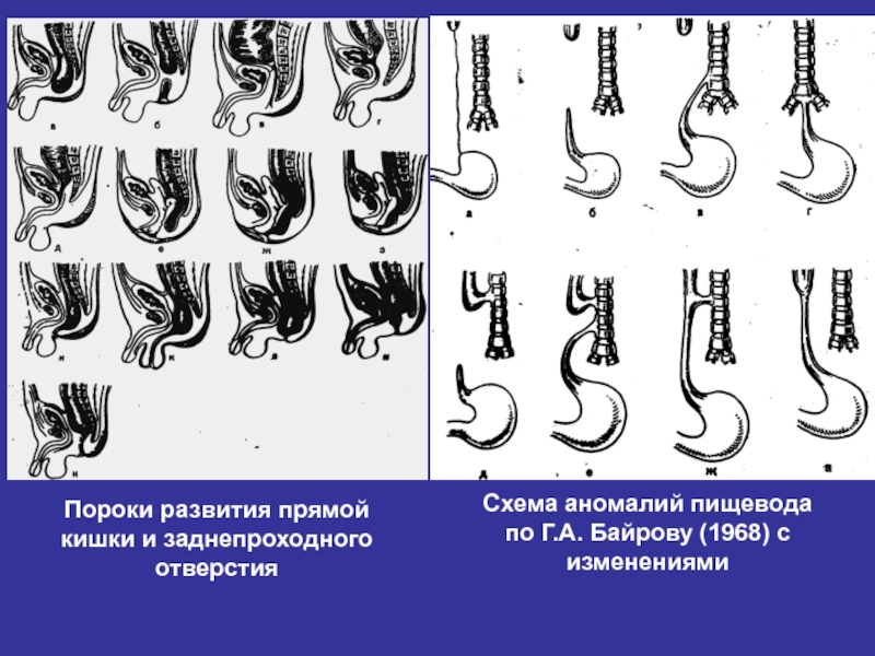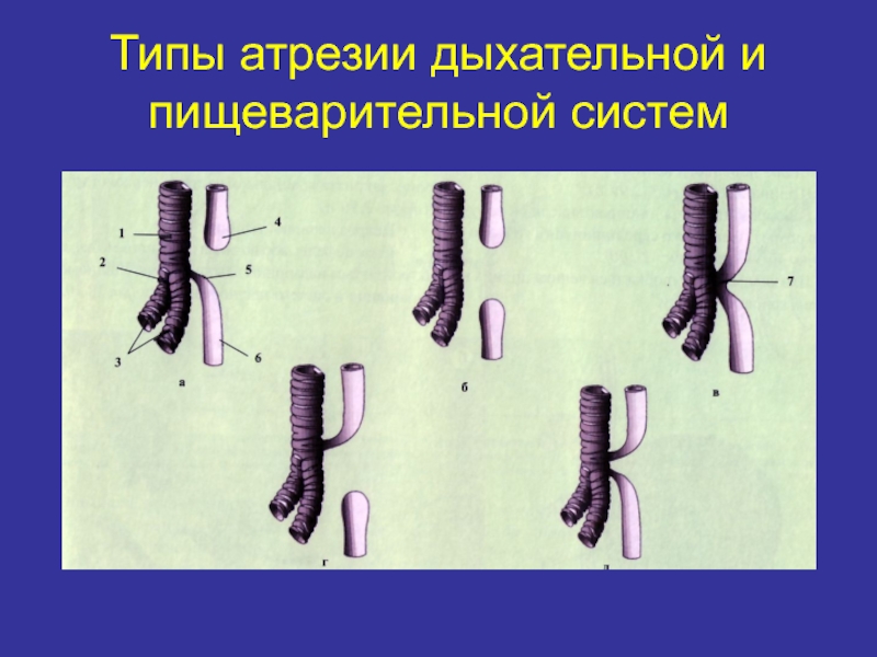 Слайд 25Типы атрезии дыхательной и пищеварительной систем