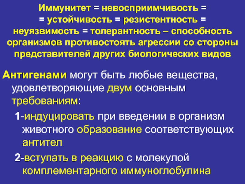 Антигенами могут быть любые вещества, удовлетворяющие двум основным требованиям:
