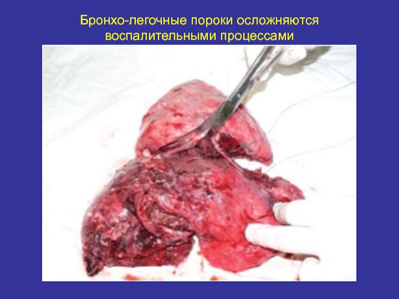 Слайд 29Бронхо-легочные пороки осложняются воспалительными процессами