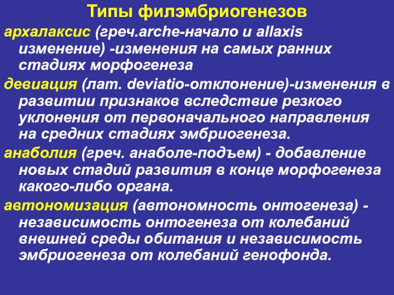 архалаксис (греч.arche-начало и allaxis изменение) -изменения на самых ранних