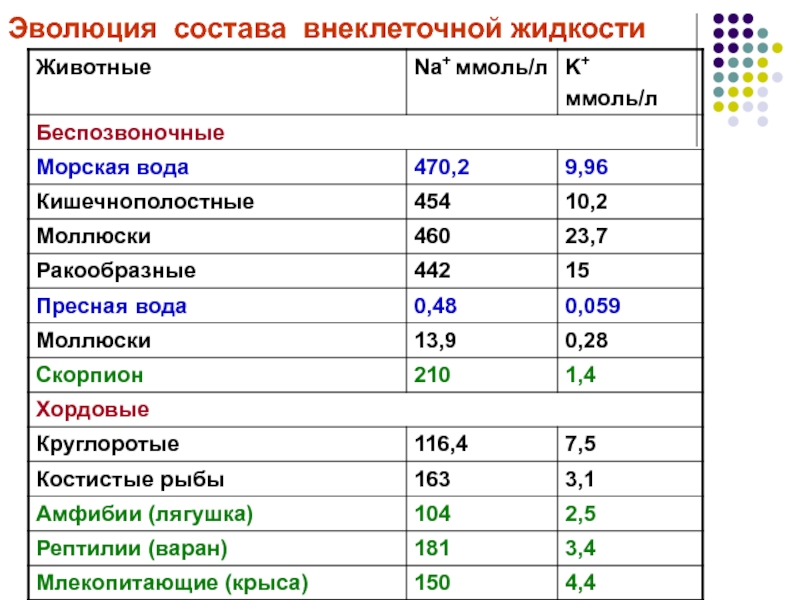 Слайд 12Эволюция состава внеклеточной жидкости