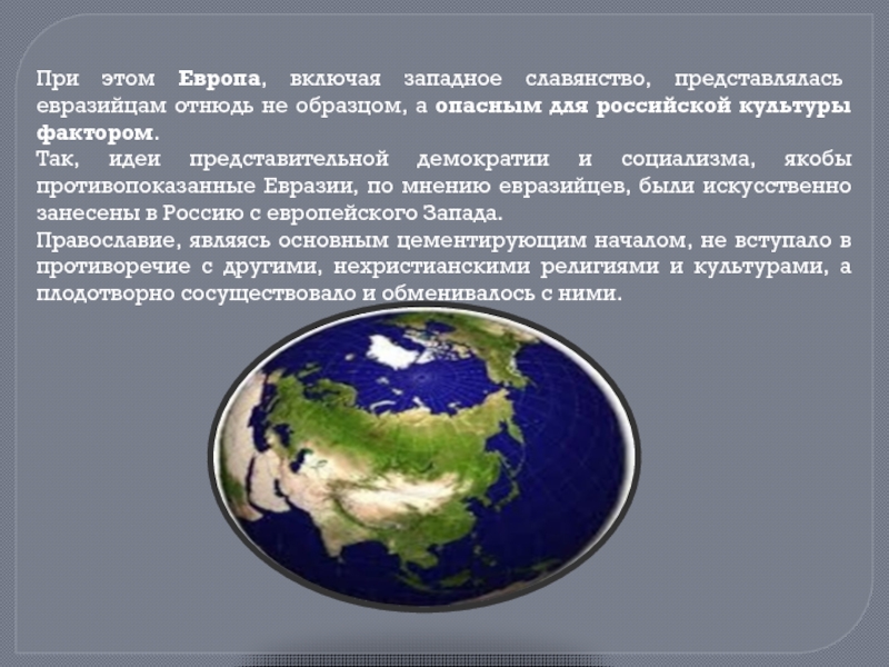 Слайд 8При этом Европа, включая западное славянство, представлялась евразийцам отнюдь не