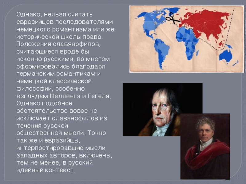 Слайд 20Однако, нельзя считать евразийцев последователями немецкого романтизма или же исторической