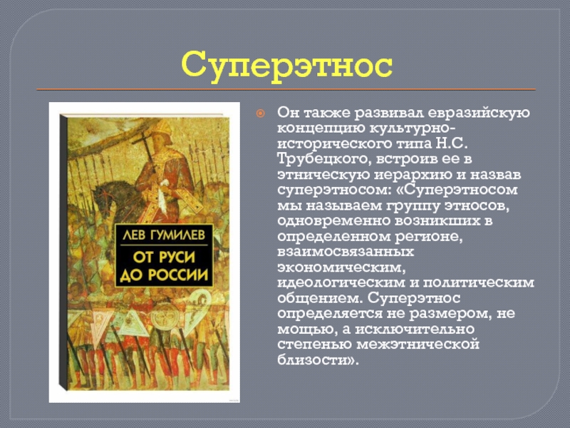 ее в этническую иерархию и назвав суперэтносом: «Суперэтносом мы называем