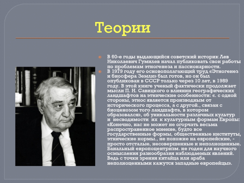 начал публиковать свои работы по проблемам этногенеза и пассионарности.
