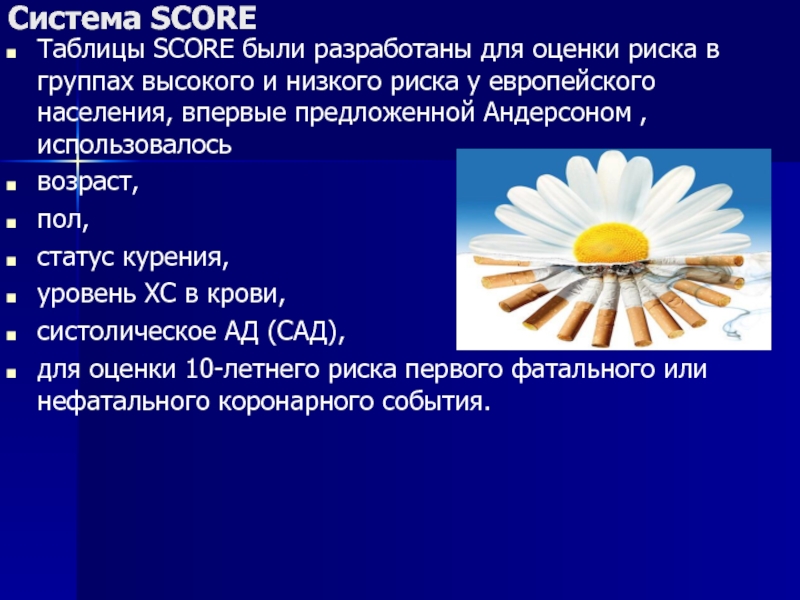 Таблицы SCORE были разработаны для оценки риска в