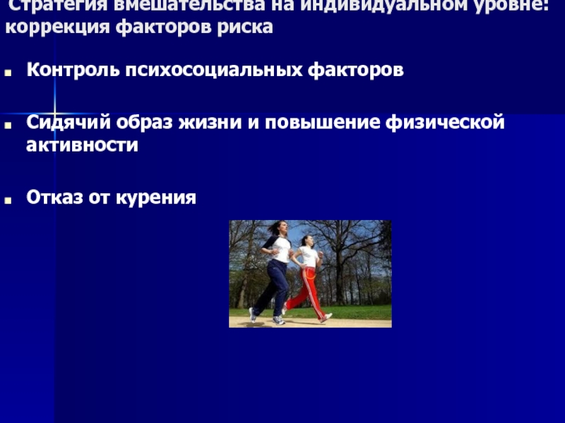 Слайд 18 Стратегия вмешательства на индивидуальном уровне: коррекция факторов риска