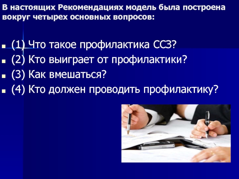 Слайд 4В настоящих Рекомендациях модель была построена вокруг четырех основных вопросов: