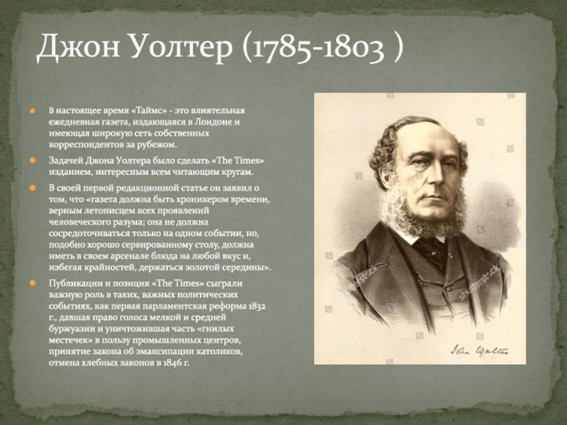 Задачей Джона Уолтера было сделать «The Times» изданием, интересным всем читающим кругам.