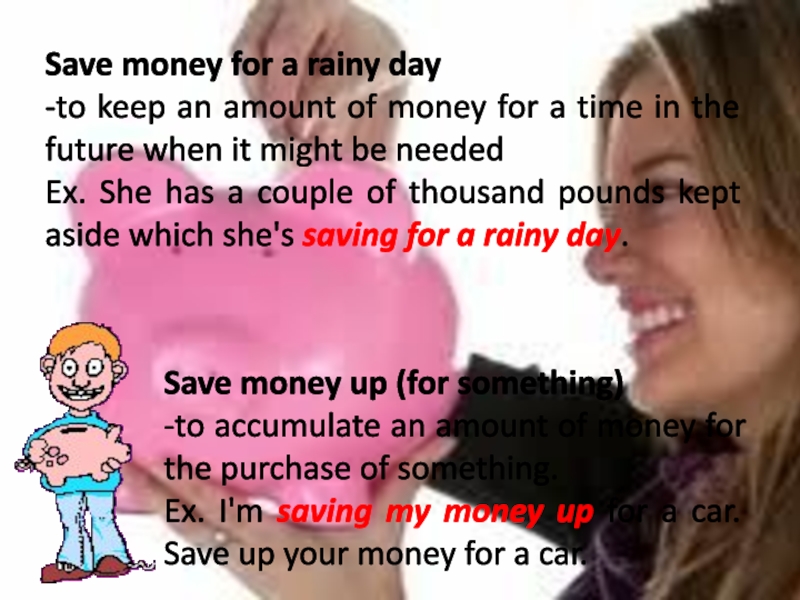 Ex. She has a couple of thousand pounds kept aside which she's saving for a rainy day.