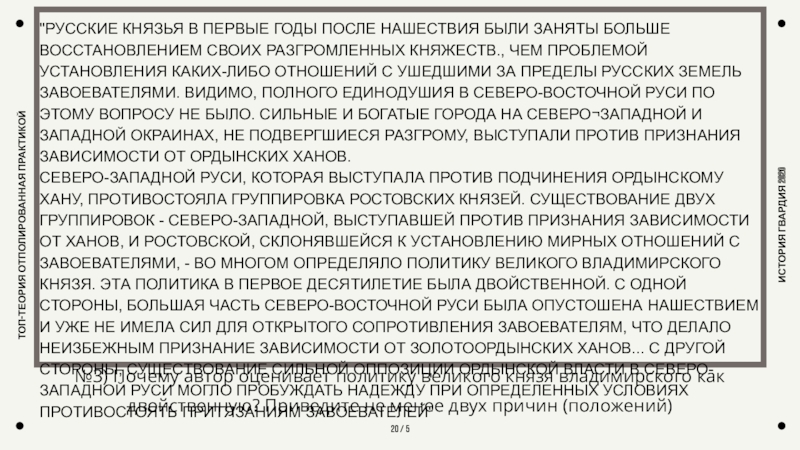 №2) На основе текста и знаний по истории укажите, как относились к проблеме установления отношений между русскими князьями и ханами ЗО представители Северо-Западной Руси и ростовские князья. Приведите не менее двух положений