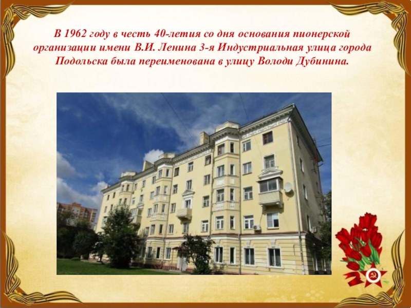 Слайд 11В доме № 6/29 по улице Володи Дубинина находится наша
