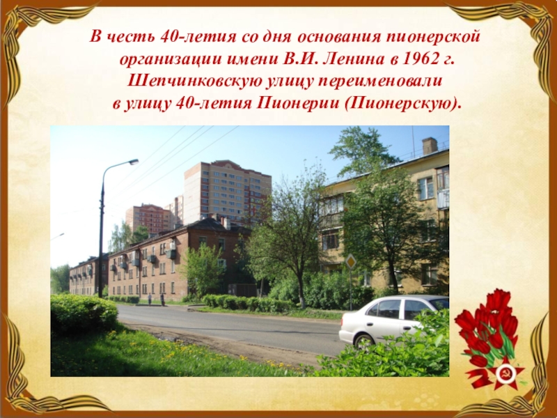 В 1962 году в честь 40-летия со дня основания пионерской организации имени В.И. Ленина 3-я Индустриальная улица