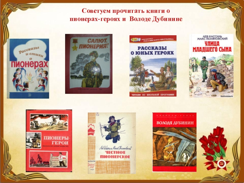 Слайд 12Советуем прочитать книги о пионерах-героях и Володе Дубинине