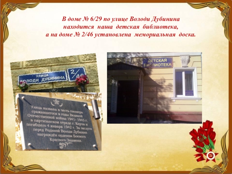 В доме № 6/29 по улице Володи Дубинина  находится наша детская библиотека, а на доме №