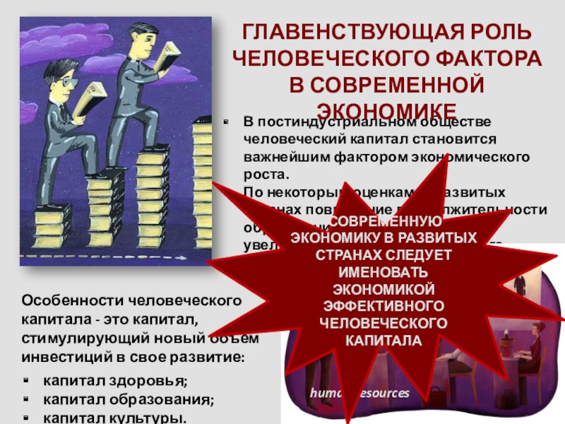 Особенности человеческого капитала - это капитал, стимулирующий новый объем инвестиций в свое развитие: