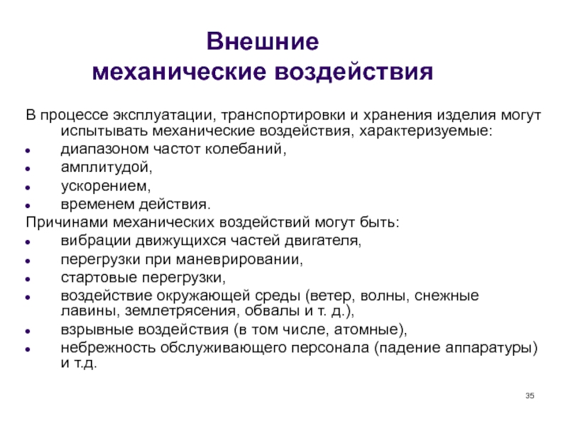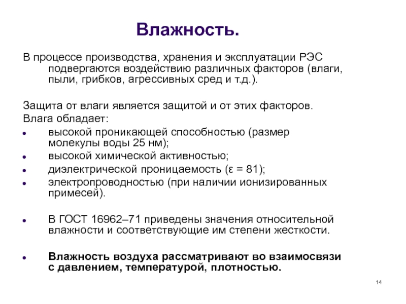 В процессе производства, хранения и эксплуатации РЭС подвергаются воздействию различных