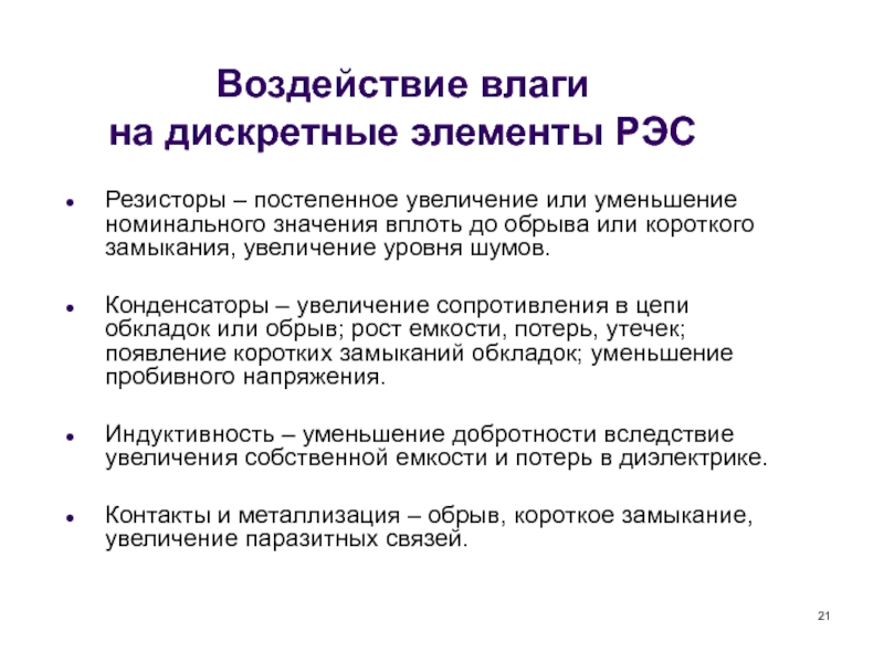вызывает отклонение параметров РЭС и как внезапные, так и постепенные отказы [45].