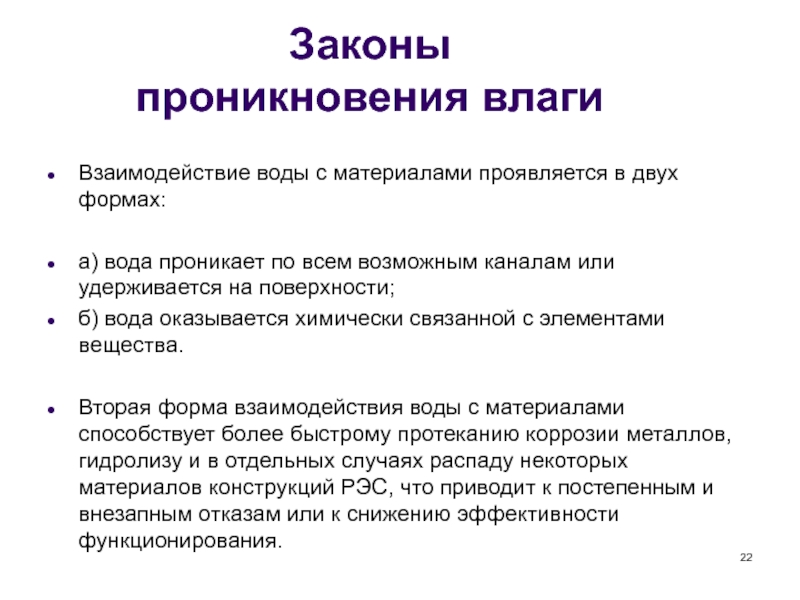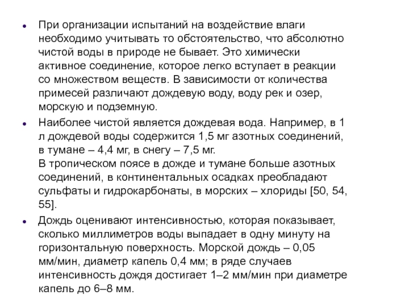 Слайд 15При организации испытаний на воздействие влаги необходимо учитывать то обстоятельство,