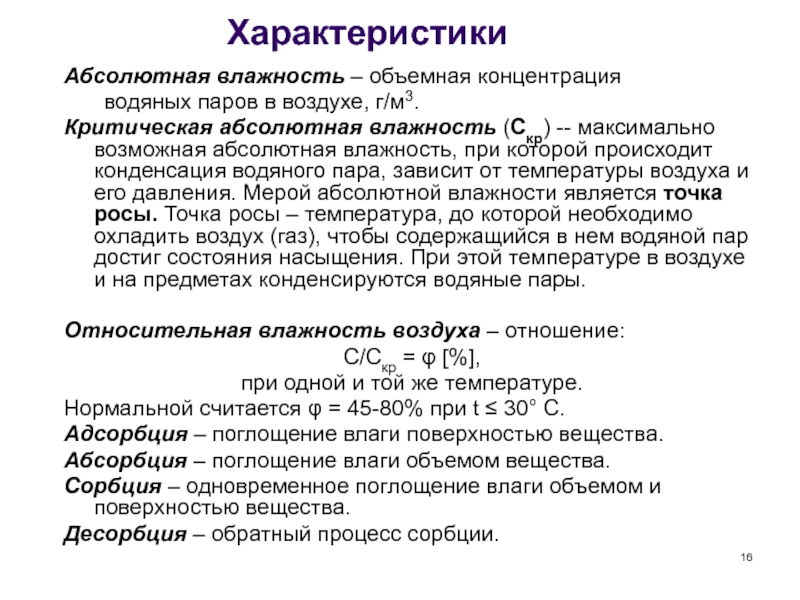 Влажность воздуха рассматривают во взаимосвязи с давлением, температурой, плотностью.