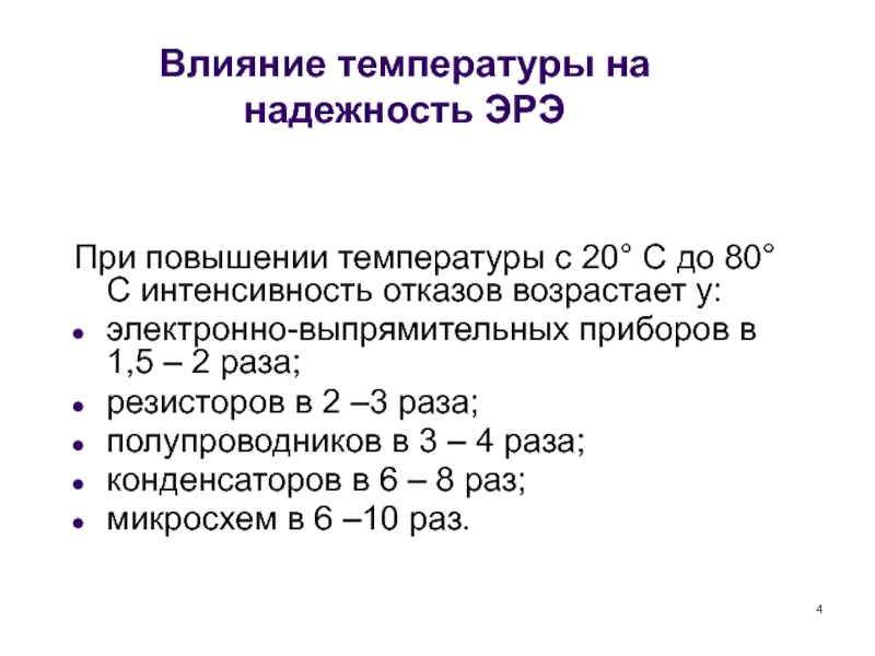 Слайд 4Влияние температуры на надежность ЭРЭ