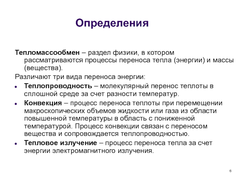 Тепломассообмен – раздел физики, в котором рассматриваются процессы переноса тепла