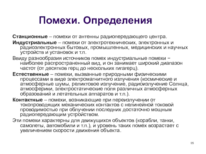 Эти помехи характерны для движущихся объектов (корабли, танки, самолеты, автомобили и т.п.), и уровень таких помех возрастает с увеличением скорости движения объекта.