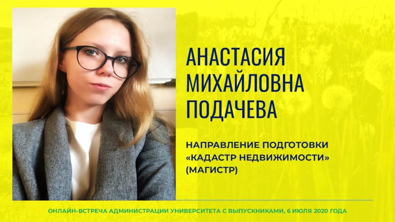 АНАСТАСИЯ МИХАЙЛОВНАПОДАЧЕВАНАПРАВЛЕНИЕ ПОДГОТОВКИ «КАДАСТР НЕДВИЖИМОСТИ» (МАГИСТР)