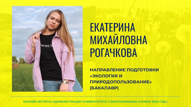 ЕКАТЕРИНА МИХАЙЛОВНА РОГАЧКОВАНАПРАВЛЕНИЕ ПОДГОТОВКИ «ЭКОЛОГИЯ И ПРИРОДОПОЛЬЗОВАНИЕ»(БАКАЛАВР)