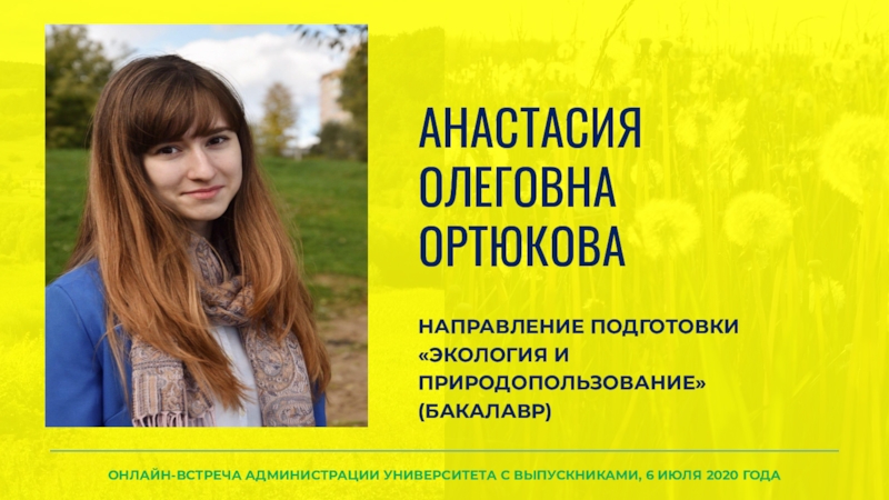 АНАСТАСИЯ ОЛЕГОВНА ОРТЮКОВАНАПРАВЛЕНИЕ ПОДГОТОВКИ «ЭКОЛОГИЯ И ПРИРОДОПОЛЬЗОВАНИЕ» (БАКАЛАВР)