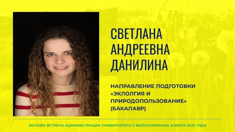 СВЕТЛАНА АНДРЕЕВНА ДАНИЛИНАНАПРАВЛЕНИЕ ПОДГОТОВКИ «ЭКЛОЛГИЯ И ПРИРОДОПОЛЬЗОВАНИЕ» (БАКАЛАВР)
