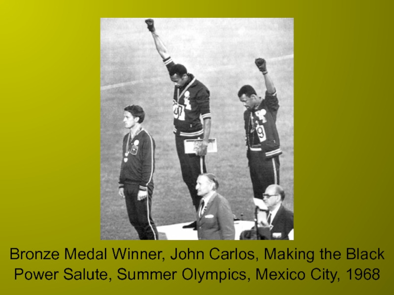 Слайд 4Bronze Medal Winner, John Carlos, Making the Black Power Salute,