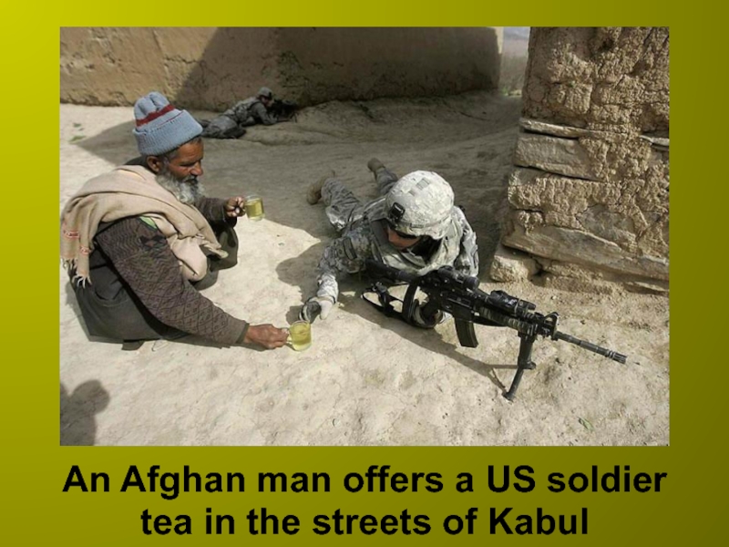 Слайд 12An Afghan man offers a US soldier